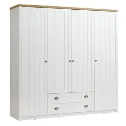 Konstfanér och MDF. Lådor med fullt utdrag. Garderobsinredning: 8 hyllor och 1 klädstång. B212 x H210 x D61 cm