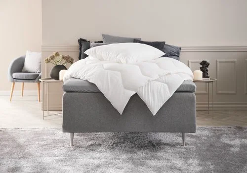 | Fyllning kvalitet | Täcke: 100% polyester (100% återvunnen), silikoniserad spiralformad hålfiber. Kudde: 100% polyester (100% återvunnen), silikoniserad spiralformad hålfiber |