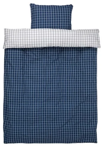 KRONBORG Påslakanset KARIN Percale 150×210 Vit/blå